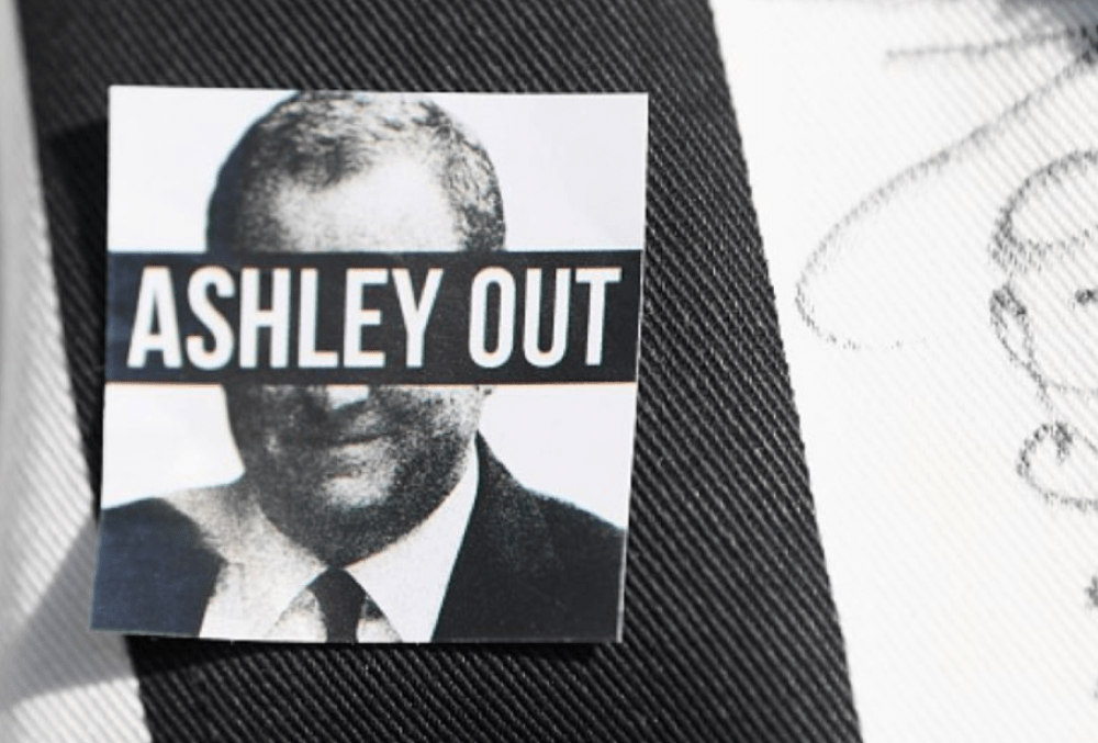 Najveći bes navijači su imali 2011. godine, kada je Ešli pokušao da preimenuje Sent Dežjms Park u Sport Direct Arena, po imenu sponzora kluba, i kompanije čiji je vlasnik.